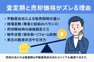 不動産売却の査定額はあくまで「目安」に過ぎず、必ずしもその価格で売れるとは限りません。ズレが生じる理由は以下の通りです。